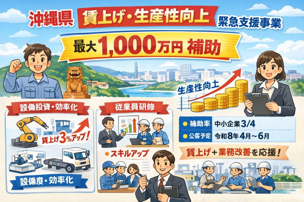 【沖縄県内事業者様向け】最大1,000万円の「賃上げ・生産性向上緊急支援事業」が予定されています
